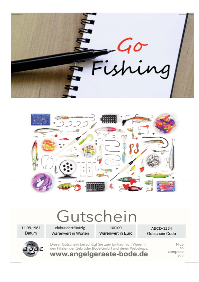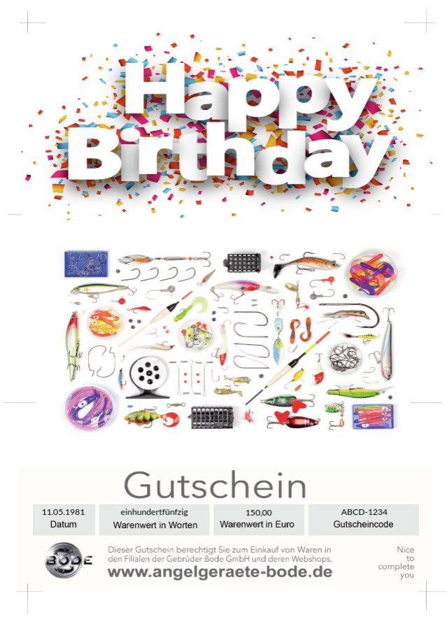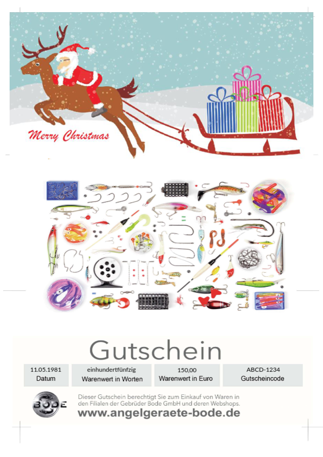 Gutscheine für jeden Anlass. Damit liegst Du immer richtig. Ob zu Weihnachten, Geburtstag oder Jubiläum - mit einem Gutschein hast Du immer das passende Geschenk. Wähle unter verschiedenen Motiven das passende aus - Weihnachten - Happy Birthday oder go fishing. Unmittelbar nach der Beendigung des Kaufes und dem Erhalt der Zahlung wird dein persönlicher Gutschein als PDF per E-Mail versendet. Mit dem Gutschein-Code kann man in allen unseren Filialen oder auch in unserem Webshop einkaufen.