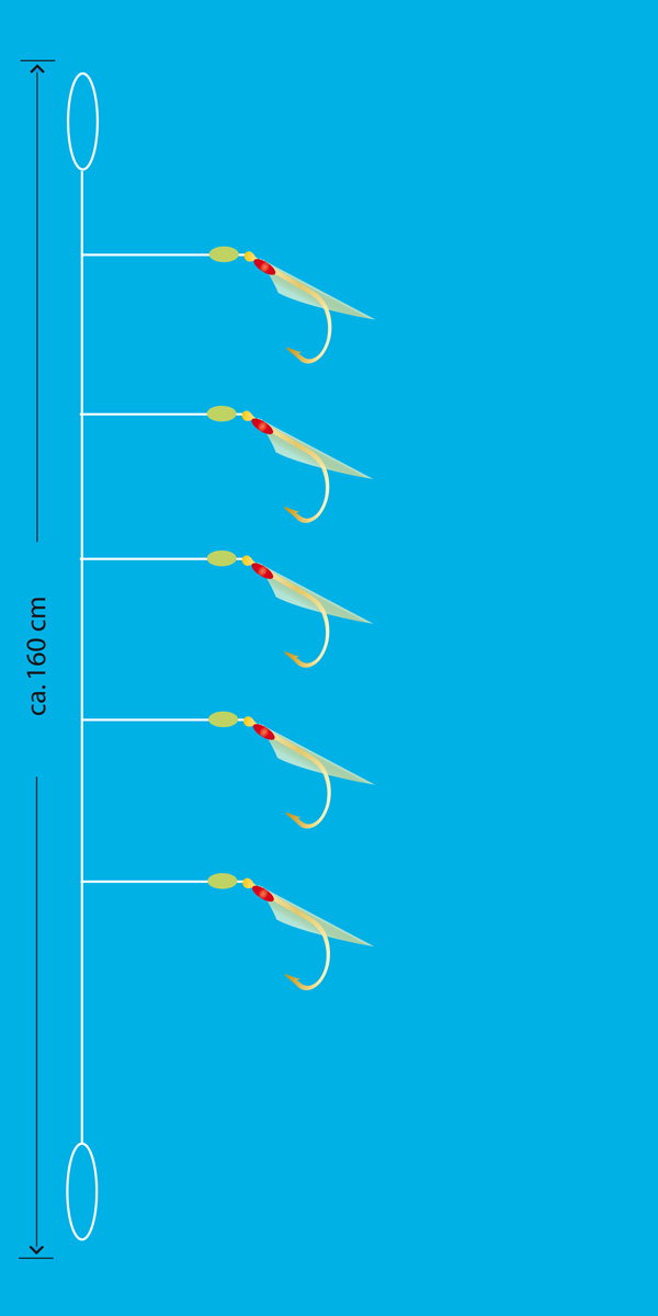 Heringsvorfach mit 5 Goldhaken und echter Fischhaut.