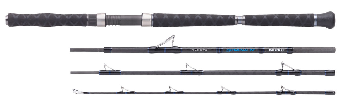 Adrenalin® IM-12 Adrenalin…nur das Beste verdient den Namen Adrenalin! Nachdem die Ruten der Vorgängerserie alle Längen unter 2 Meter hatten, sind wir bei der neuesten Adrenalin Serie wieder zu den klassischen Längen zurückgekehrt. Die Blanks sind so gut wie ungeschliffen und vollständig mit Carbon Tape umwickelt. Diese Kombination bewirkt, dass die Blanks etwa 20% stärker sind als bei vergleichbaren Ruten. Bei den Komponenten werden nur hochwertigste Komponenten verbaut. Alle Rollenhalter sowie die Alconite Ringe stammen aus dem Hause Fuji. Einlass- und Trompetenring der Inliner-Ruten sind von dem renommierten Hersteller Seaguide. Bei den Griffen greifen wir auf die bewährten Shrink-Rubber Griffe zurück. Selbstverständlich sind alle Ringe unterwickelt. Die 4-teiligen Reiseruten haben eine Transportlänge von nur 70 cm und passen so in jeden größeren Koffer, das spart bares Geld beim Flug! AUSSTATTUNG: • Japanische IM-12 Kohlefaser • Fuji Rollenhalter • Unterwickelte Fuji Alconite Ringe • Seaguide Einlass- und Trompetenring bei Inliner-Ruten • Griffige Shrink Rubber Griffe • Ungeschliffene IM-12 Blanks mit Carbon Tape umwickelt • Travelruten mit kurzer Transportlänge von nur 70cm • Mit hochwertigem, gepolstertem FutteralADRENALIN TRAVEL HEAVY 700 Wenn es mit schweren Montagen in große Tiefen auf Rotbarsch, Leng etc. geht oder gezielt auf kapitale Räuber, liegen Sie mit dieser Rute goldrichtig.