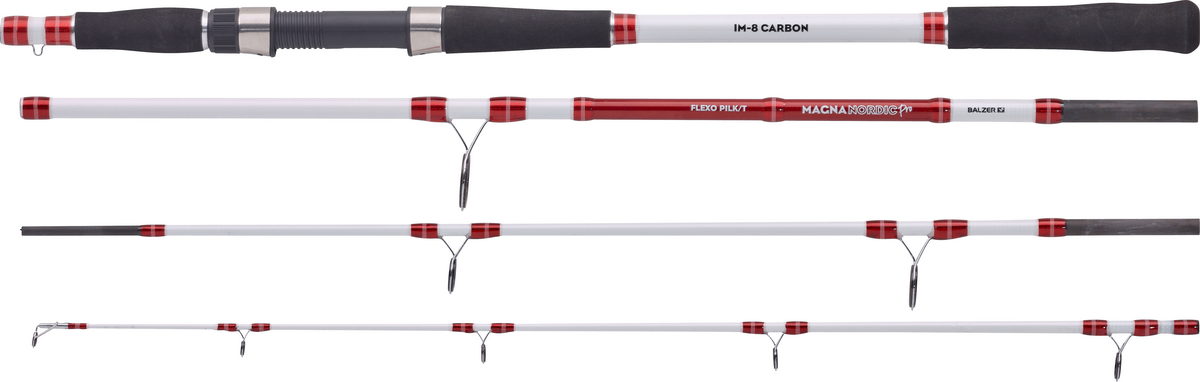 Magna Nordic Pro: Die bereits 3. Auflage unserer Magna Nordic Ruten überzeugt vor allem durch ein ausgezeichnetes Preis-/Leistungs-Verhältnis. Von Light Tackle bis zum schweren Naturköderangeln findet der Meeresangler hier garantiert seine Wunschrute.Ausstattung: High Modulus IM-8 Carbon, Schlanke Titan SIC Ringe, Geteilte Duplon Griffe, Robuste Rollenhalter aus Edelstahl/Nylon-ABS, präzise Steckverbindungen. Magna Nordic PRO Flexo Pilk Travel: Herrlich leichte Pilkrute für Wassertiefen bis ca. 100m und Ködergewichten bis etwa 200g.