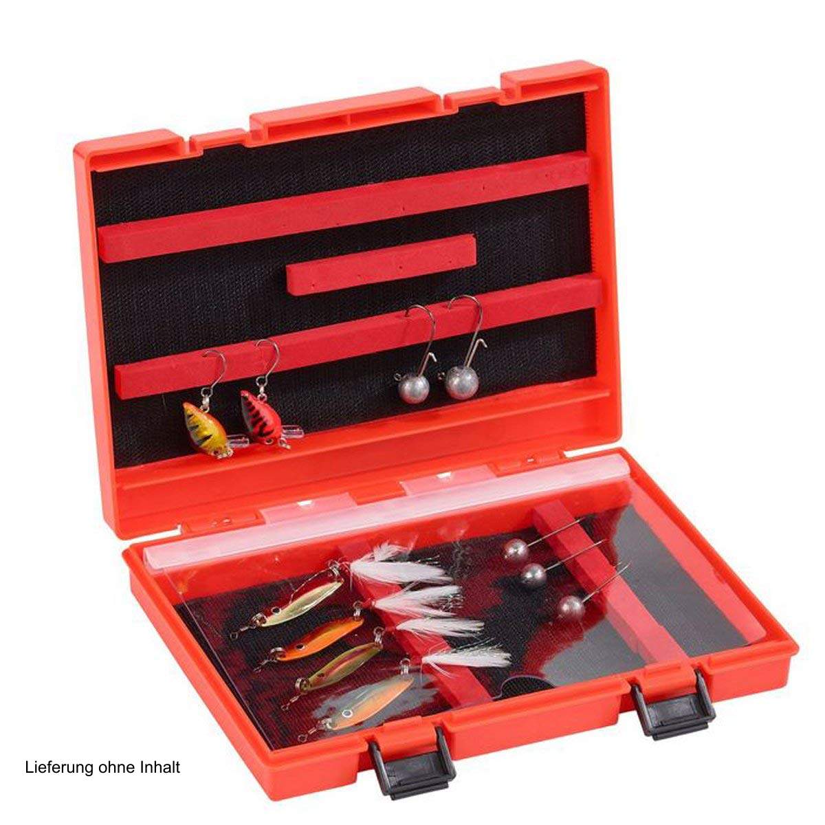 Shirasu Spoon DepotDie perfekte Box für alle Spoon- und Microköder. Die Köder werden einfach in die Streifen aus Duplon gehängt. Die Innenseiten der Box sind mit Klettband ausgestattet, sodass die Duplonstreifen individuell versetzt werden können. Auch hervorragend für Jigköpfe geeignet! Lieferung ohne Inhalt.