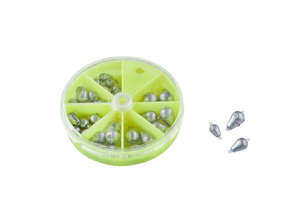 Mit Kunststoffdurchlauf und Gewichtsangaben auf jedem Blei. Sortierung 1 / 1,5 / 2 / 3 / 3,5 / 4 / 5g.