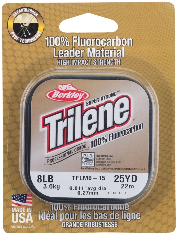 BERKLEY Trilene 100% Fluorocarbon auf Vorfachspulen. Im Wasser nahezu unsichtbar, ist diese Schnur für viele Angelarten einsetzbar.