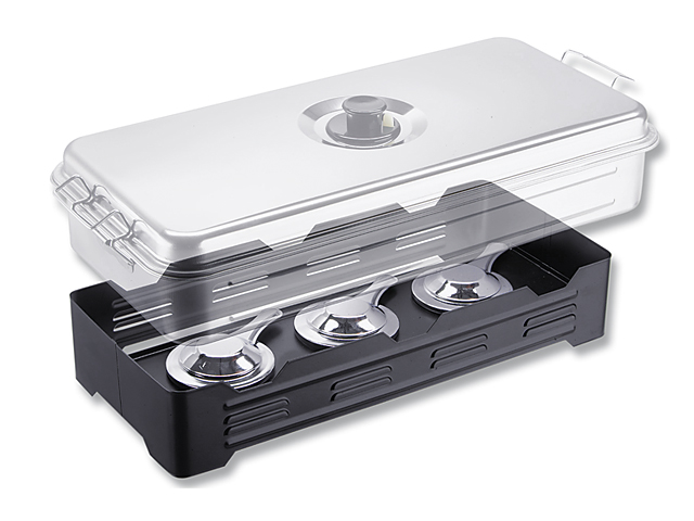 Bei dem XL Räucherofen verteilen 3 große Brenntöpfe die Hitze gleichmäßig und konstant. Der Deckel ist dicht verschließbar.