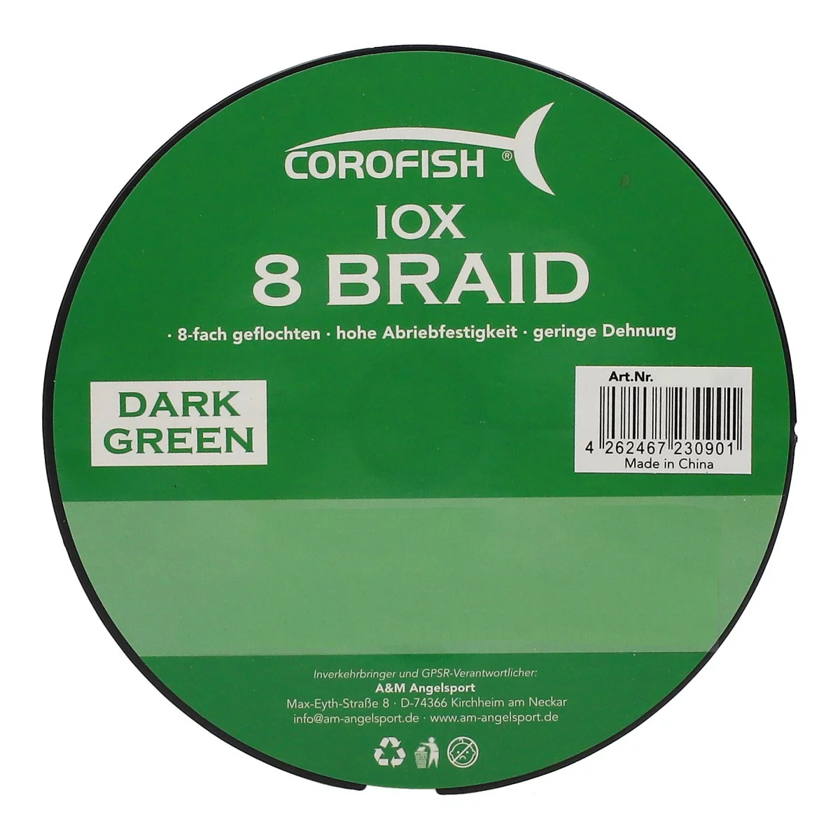 Die Corofish IOX 8 Braid ist eine hochwertige 8-fach geflochtene Angelschnur für maximale Stärke, geschmeidiges Handling und präzise Wurfweiten. Erhältlich in Dark Green und Yellow, bietet sie optimale Sichtbarkeit oder Tarnung – je nach Einsatzgebiet. Perfekt für Spinnfischen, Forelle, Barsch, Zander und Meeresangeln.