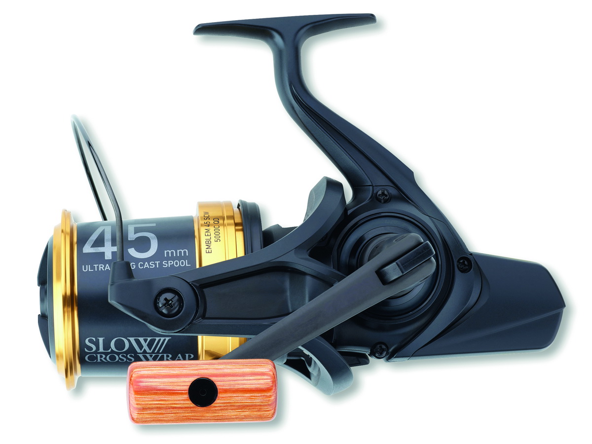 Das OT (One-Touch) Model der Emblem 45 SCW QD ist nahezu baugleich wie das normale Emblem 45 SCW QD Modell - besticht jedoch durch ihren Retro-Look mit One-Touch Klappkurbel, goldener Spule und Holzknauf.