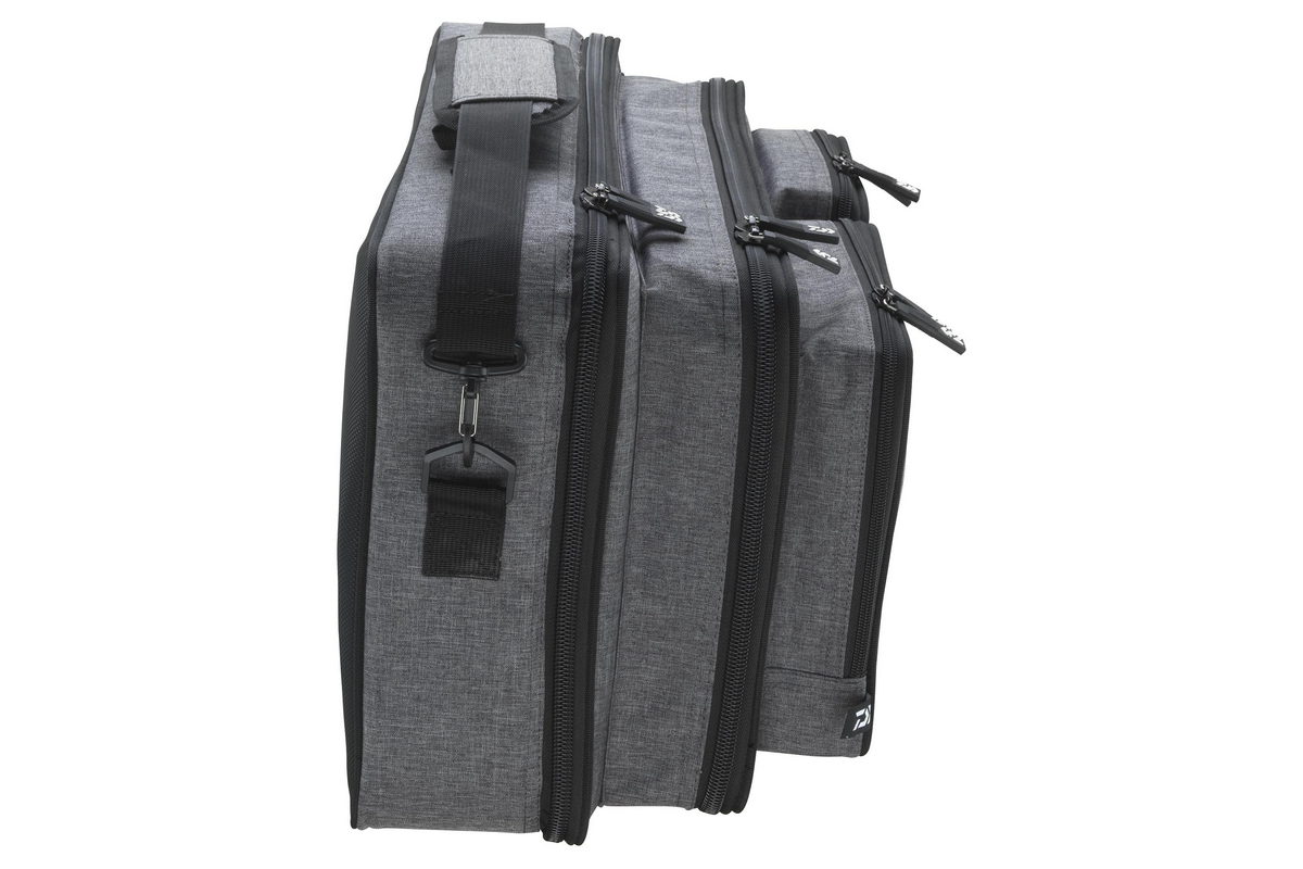 Diese hochwertige Spezialtasche von DAIWA wurde speziell für die Verwendung zum Welsangeln konzipiert und in zahlreichen Details im Vergleich zum Vorgängermodell verbessert. Das robuste, graue Polyestermaterial ist wasserabweisend und übersteht auch einen kurzen Schauer, ohne sich sofort vollzusaugen. Die beiden großen Aufsetztaschen an der Front (26x25cm, 20x25cm) bieten Platz für Tackle Boxen, Bissanzeiger, etc.