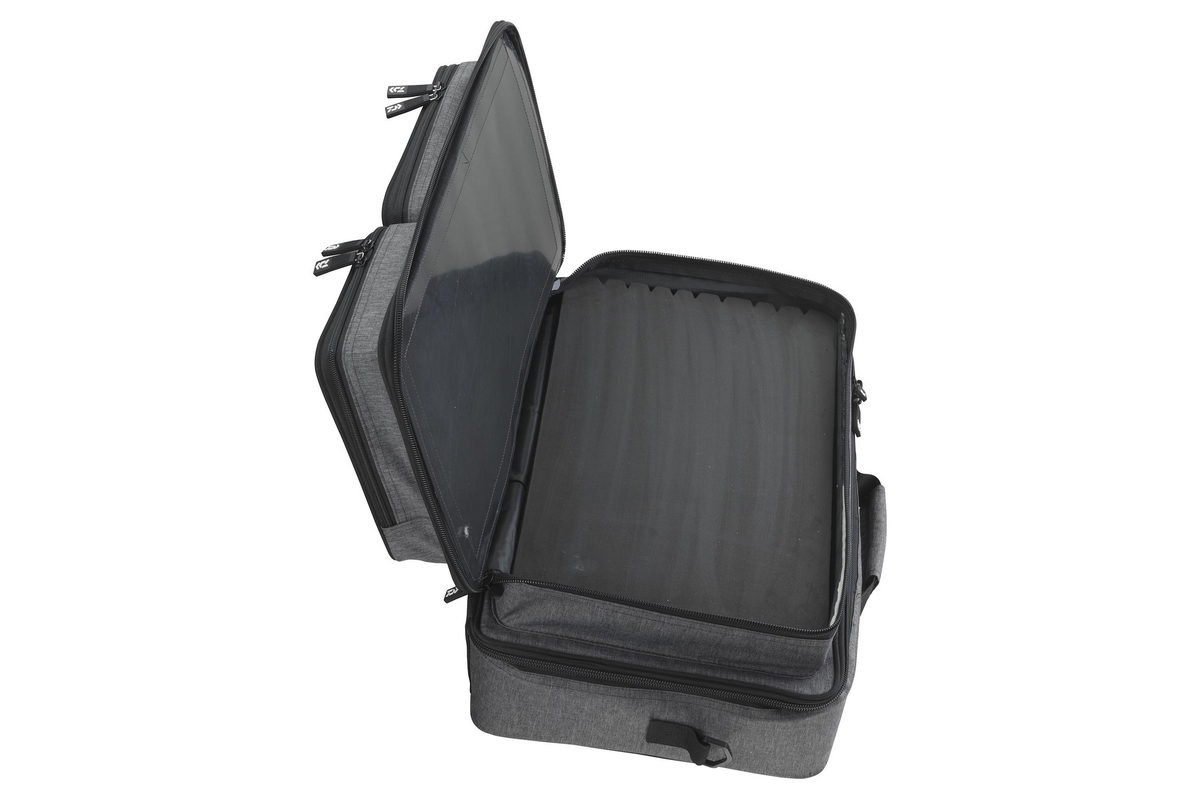 Das obere Hauptfach beinhaltet ein heraustrennbares EVA-Board zur Lagerung von fertigen Rigs mit großen Haken und einen Hardtop-Deckel, der verhindert, dass die Haken durch den Deckel dringen.