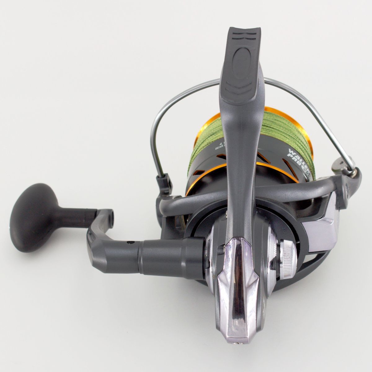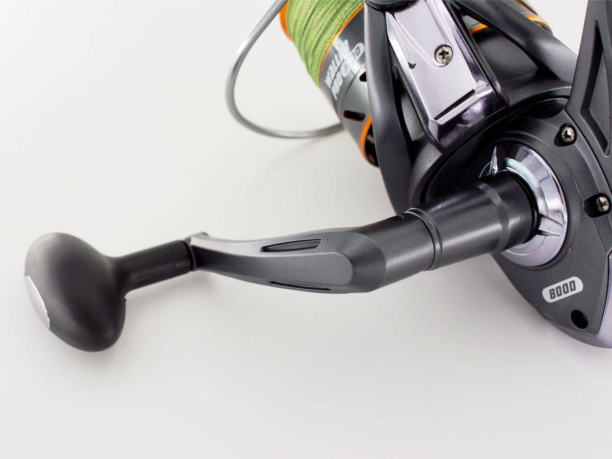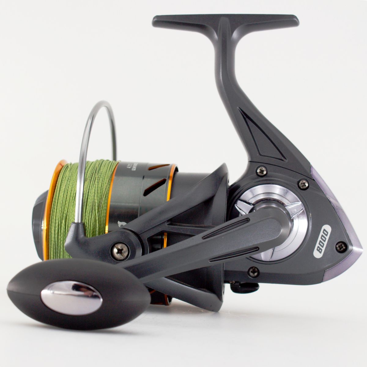 Die Rolle Waller Pro 8000 -Angelrolle mit einem Gehäuse aus verwindungsarmem Kunststoff bietet eine robuste Konstruktion. Die Aluminiumspule mit gerändeltem Spulenkern verhindert das Durchtuschen geflochtener Schnüre. Die Bremse mit drei Kohlefaser-Scheiben ermöglicht eine hohe Bremskraft und ruckfreies Arbeiten. Die Aluminium-Druckgusskurbel mit griffigem Soft-Knauf sorgt für Komfort. Ausgestattet mit drei Edelstahl-Kugellagern, ein Edelstahl-Walzenlager und einer 6 mm Edelstahlachse.