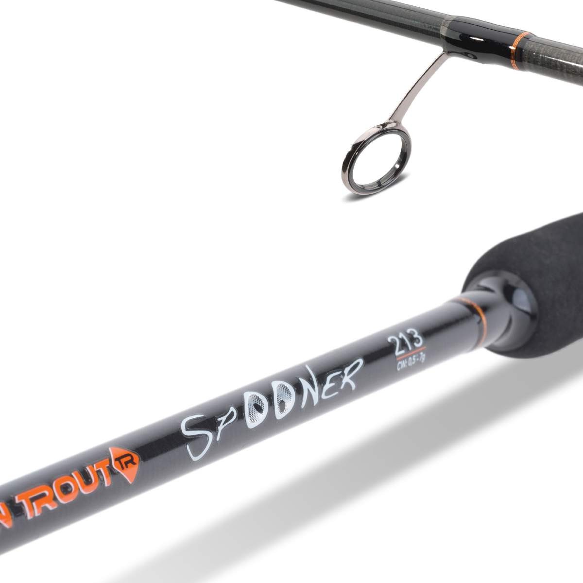 Das Fischen mit „Spoons“ am Forellensee ist absolut populär und sehr effektiv. Mit den „Spooner“ Ruten sind die absolut passenden Werkzeuge für diese kurzweilige Angelart entstanden. Aufgrund der eingespleißten Vollcarbonspitze und im Zusammenspiel mit der ausgewogenen Aktion des hochverdichteten Kohlefaserblanks lassen sich die teilweise unter 1g „leichten“ , kleinen Blinker hervorragend auf Distanz befördern. Trotz dieser feinen Aktion besitzen die beiden „Spooner“ ausreichend Reserven, auch wenn mal eine starke Lachsforelle einsteigt.
