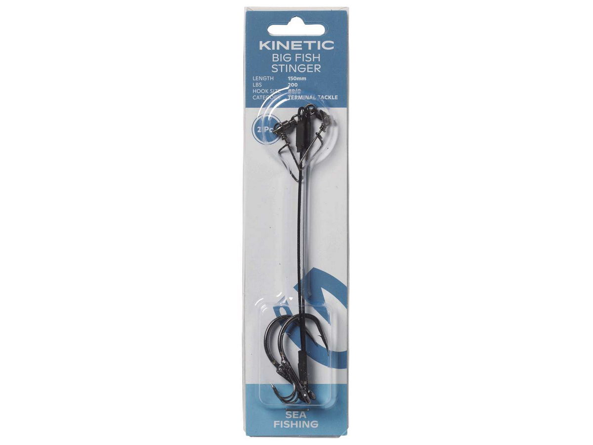 Keine verpassten Bisse mehr! Kinetic Big Fish Stinger sind handgefertigt mit erstklassigen Komponenten - 200lbs Stahldraht und ultra-scharfe Drillinge. Speziell entwickelt fürs schwere Meeresangeln und den Einsatz mit großen Gummiködern. Spezieller Naturköderhaken - chemisch geschärft Stark beschichteter rostfreier Stahldraht Kugellager-Wirbel w/Coast Lock Sprengringe aus Edelstahl