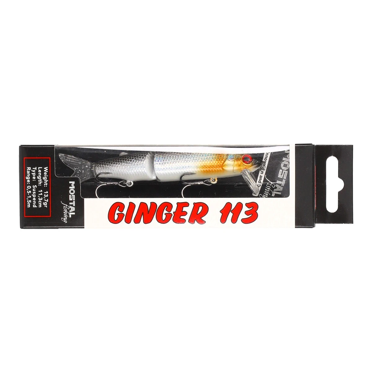 Der Mostal Ginger 113 ist ein vielseitiger Suspending Wobbler, der mit seiner Länge von 11,3cm und 13,7g Gewicht perfekt ausbalanciert ist. Dank seiner Lauftiefe von 0,5–1,5m lässt er sich flexibel führen und bleibt in der gewünschten Wasserschicht stehen, was ihn für Räuber besonders reizvoll macht.