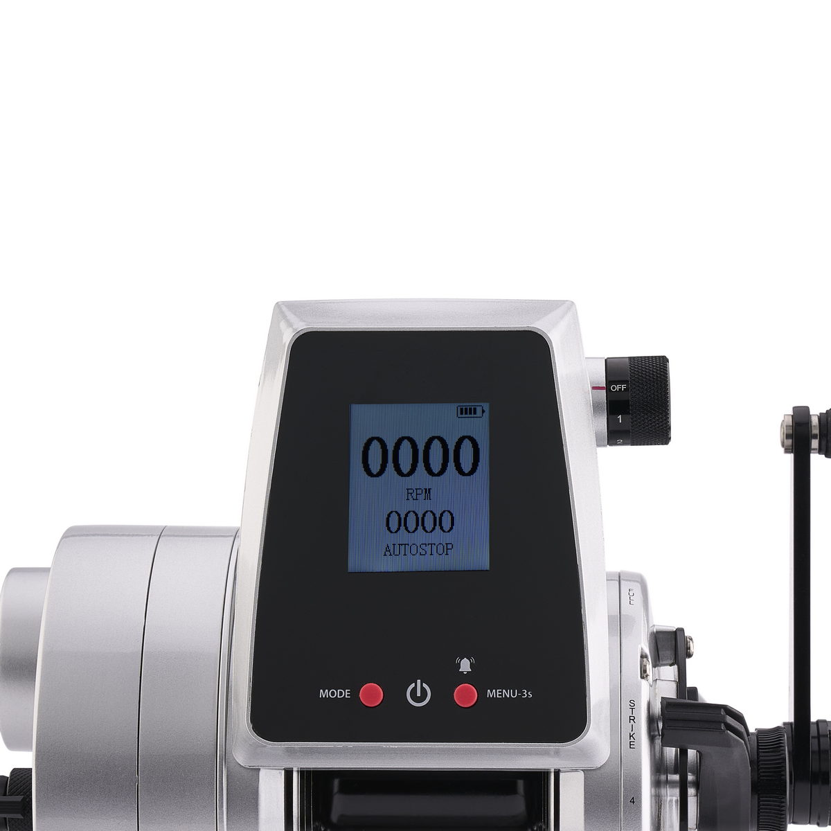 _Integrierter Lithium-Ionen-Akku_Variabler Geschwindigkeitsregler_Autostop-Funktion für freihändiges Einholen_LED-Display_Programmierbarer Schnurdurchmesser für präzisen Schnurzähler_Leinenführung für einfaches Durchführen von Knoten und Wirbeln_Spool-Spannungsregler verhindert Überlaufen bei freier Rolle_IPX6-versiegelte Motor- und Akkufächer_Backup-Griff lässt sich per Knopfdruck einrasten_12V-System_Kit enthält (1) Rolle, (1) 5AH-Lithium-Ionen-Akku, (1) Einzelladegerät