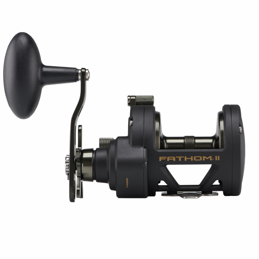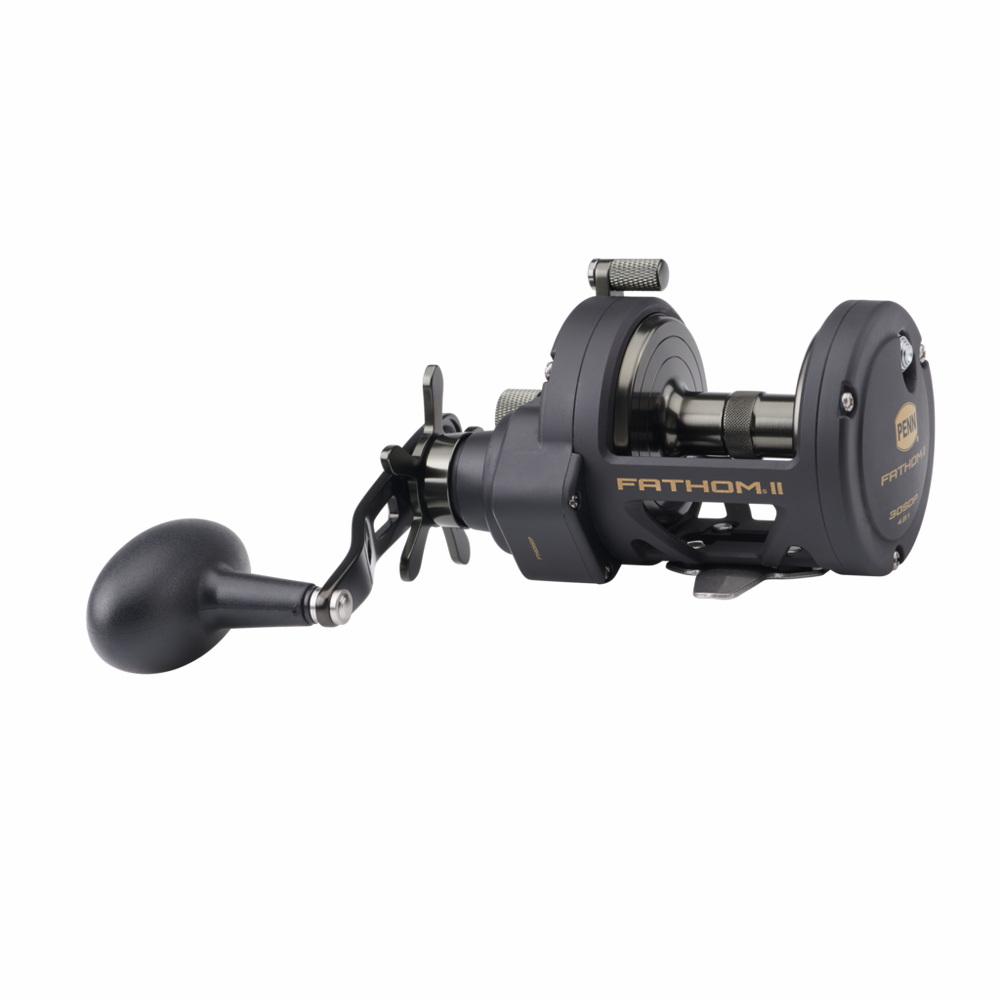 Die zweite Generation PENN® Fathom® II Star Drag Reel kommt mit starrem Metallrahmen und Seitenplatten, jetzt mit neuen Eigenschaften um sie noch anglerfreundlicher zu machen. Über die abnehmbare Seitenplatte kann man schnell und effektiv auf das Getriebe und das HT-100™ Bremssystem zugreifen und damit arbeiten. Das PENN live Spindle Design bietet weite, mühelose Würfe, während die Gebtriebeübersetzung (nur bei ausgewählten Modellen) ultimativen Drehmoment gibt, um tiefstehende Fische einzukurbeln.