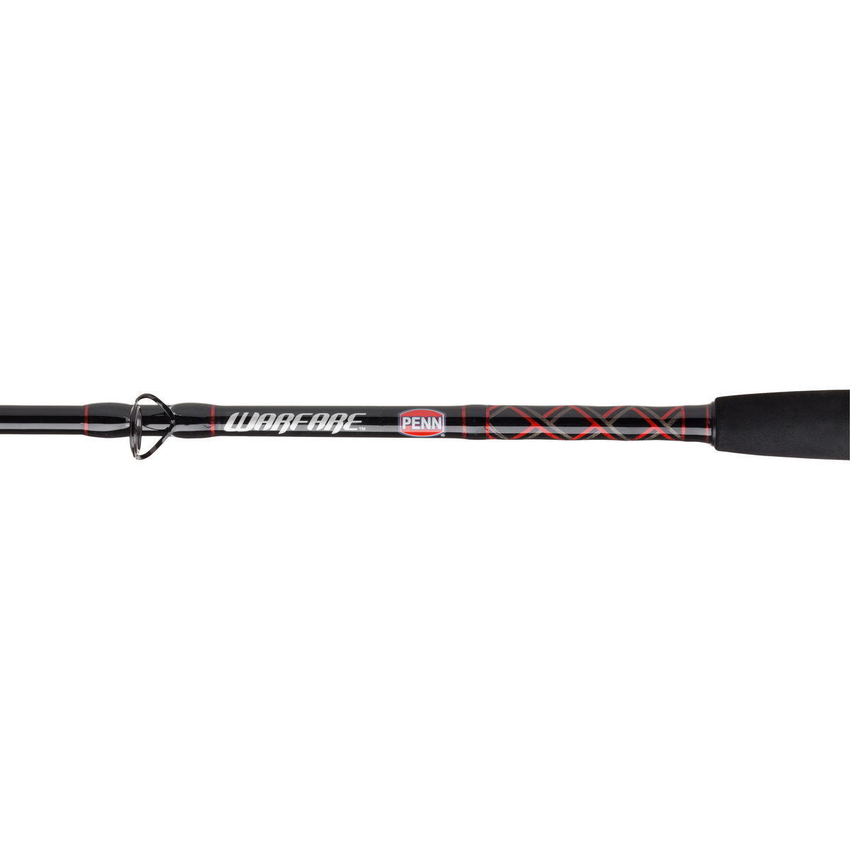 Die PENN Warfare-Kombi wurde als extrem vielseitige Universalkombination entwickelt, die zudem einen günstigen Preis bietet. Sie enthält eine leichte Rolle mit Rahmen und Seitenplatten aus Graphit, kombiniert mit einer Rute aus starkem Verbundwerkstoff.