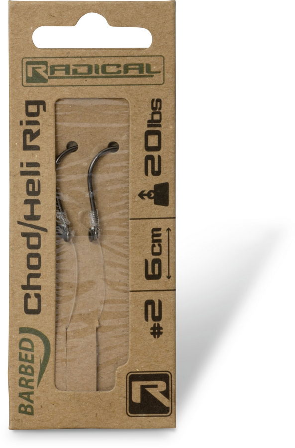 In den letzten Jahren erlebte das Chod Rig / Heli Rig eine wahre Renaissance, deshalb darf es im Angebot von Radical einfach nicht fehlen. Eine solche Montage kann auch in schlammigen Seen mit starkem Krautwuchs gefahrlos platziert werden. Ein sofort einsatzbereites Rig in 6 Zentimetern Länge, gebunden aus Chod-Filament-Vorfachmaterial mit einem speziellen Choddy-Haken.