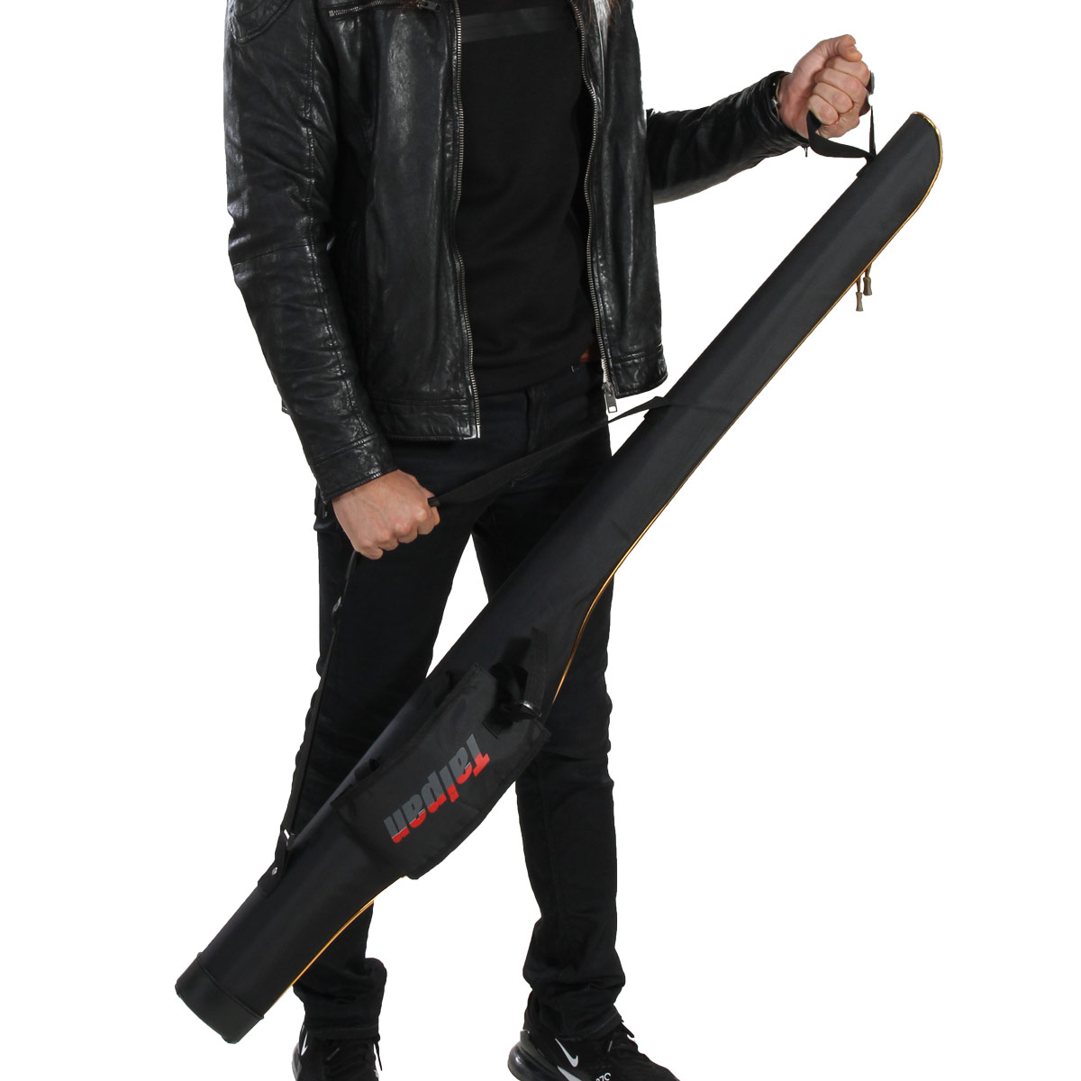 Die harte und stabile Rutentasche zum Transport von einerSpinrute ist der perfekte Partner. Verfügbar in den Längen 1.35m, 1.50m, 1.70m.Die Tasche ist 7,5cm breit. Jede Tasche verfügt über eine Tackle Box Halterung. Hier können Boxen bis 22 x 17cm über universelle Gummibänder einfachtransportiert werden. Der praktische schultergurt bietet auch bei längerenStrecken den optimalen Komfort.