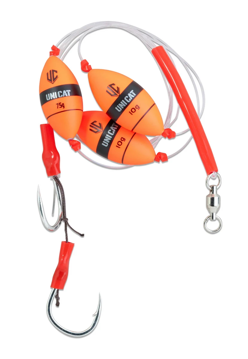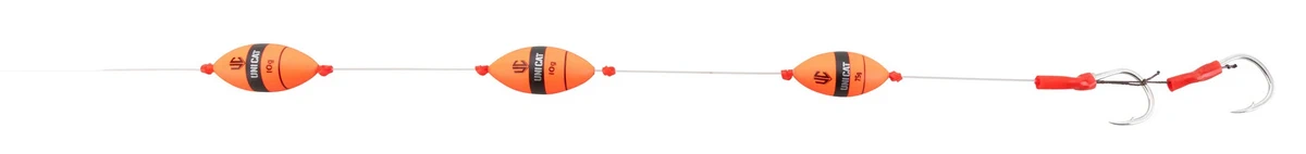 Perfekt austarierte U-Posenmontagen für das Fischen mit Köderfischen und Naturködern auf Wels. Alle Profi Rigs sind mit KONA© Haken ausgestattet und SB gepackt. Gebunden an Extreme Mono Line Ø 1,15 mm.