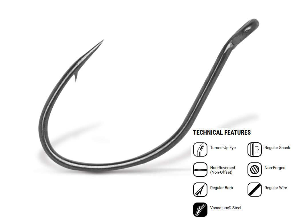 • Ideal, um einen Fischkopf zu montieren• Nach innen gebogene Spitze• Passt zu Lebendködern (nose hooked) und zum Dropshotting• Hi-Carbon Stahl für die Größen 5/0, 7/0 und 9/0.