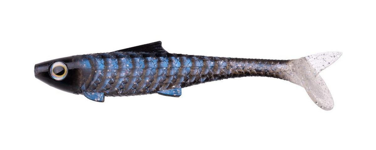 Der Rippler stammt aus der Ideensammlung von Uli Beyer. Ziel war es, eine große Silhouette mit einem geringen Gewicht und optimalen Laufeigenschaften zu kombinieren. Die aufwendig geformten Rippen haben eine echte Herausforderung im Formenbau dargestellt, weshalb es so einen Köder bisher auch noch nicht gab. Schräg gestellte, tief ausgeschnittene Rippen erlauben eine verbesserte Aerodynamik, sowie eine spürbare Gewichtsreduzierung. Außerdem bleibt die Beweglichkeit erhalten und der Köder faltet sich auch leicht im Räubermaul ein. Den Rippler in 16 cm kannst du Jiggen, aber auch einfach Einleiern. Zielfische sind in erster Linie Hecht und Zander. Laufverhalten MIT oberer Schwanzspitze: Lässt du die Schwanzspitze am Köder, erhältst du eine Slow-Motion-Action, die besonders für kapitale Räuber und in der Winterangelei von Vorteil ist (dabei sollte der Köder nicht zu wild wedeln). Laufverhalten OHNE obere Schwanzspitze: Entfernst du die Schwanzspitze, erhältst du einen agilen und druckvollen Lauf. In den meisten Situationen (vor allem in Warmperioden) empfehlen wir dir diese Köder-Aktion. Die Schwanzspitze kannst du übrigens einfach abreißen (Grafik beachten).